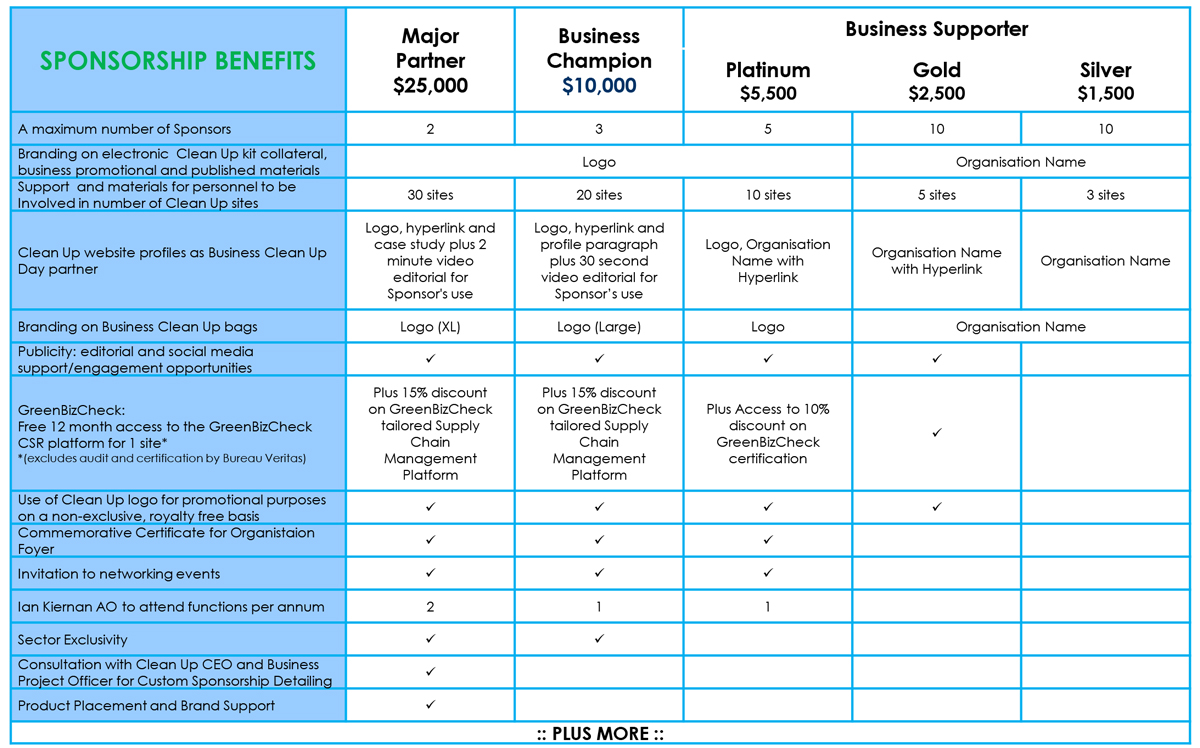 - Become a Business Supporter – a sponsorship option that is attractive for businesses with multiple branches. See options in the table below or here.