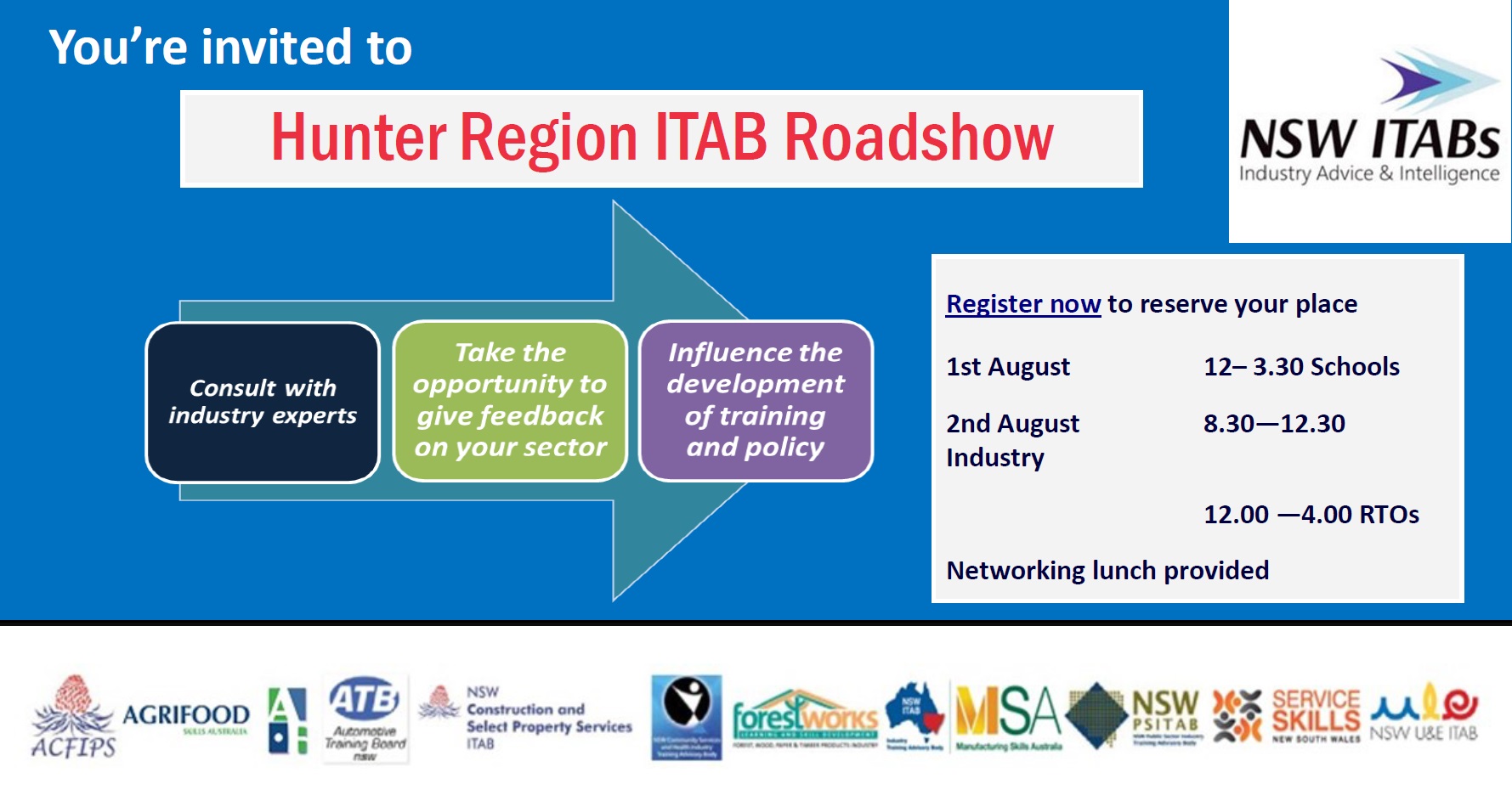 The 2017 ITAB Roadshow provides an opportunity for Industry, Schools and Training Providers to network and provide valuable feedback on your sector and influence the development of training and policy.