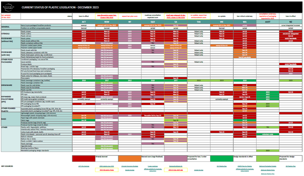 Governments in multiple states and territories are currently either implementing or considering bans on a range of plastic items including: